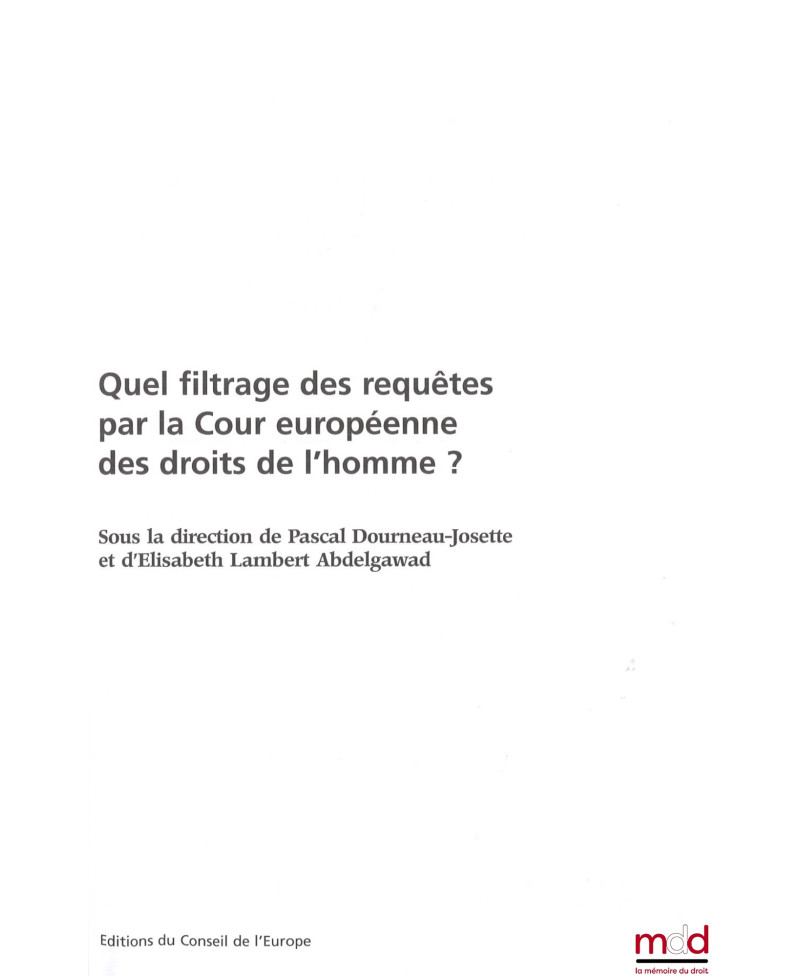 QUEL FILTRAGE DES REQUÊTES PAR LA COUR EUROPÉENNE DES DROITS DE L’HOMME ?, dir. Pascal Dourneau-Josette et Elisabeth Lambert Abdelgawad