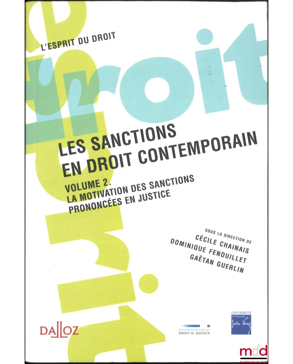 LES SANCTIONS EN DROIT CONTEMPORAIN, vol. II : La motivation des sanctions prononcées en justice, dir. Cécile Chainais, Dominique Fenouillet et Gaëtan Guerlain, coll. L’Esprit du Droit