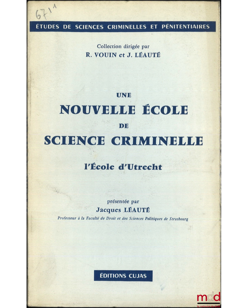 UNE NOUVELLE ÉCOLE DE SCIENCE CRIMINELLE, l’École d’Utrecht, Préface de l’auteur, Bibl. de sciences criminelles et pénitentiaires