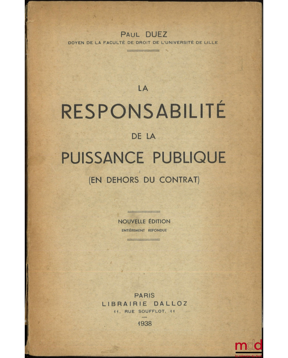 LA RESPONSABILITÉ DE LA PUISSANCE PUBLIQUE, (En dehors du contrat), Nouvelle éd. entièrement refondue