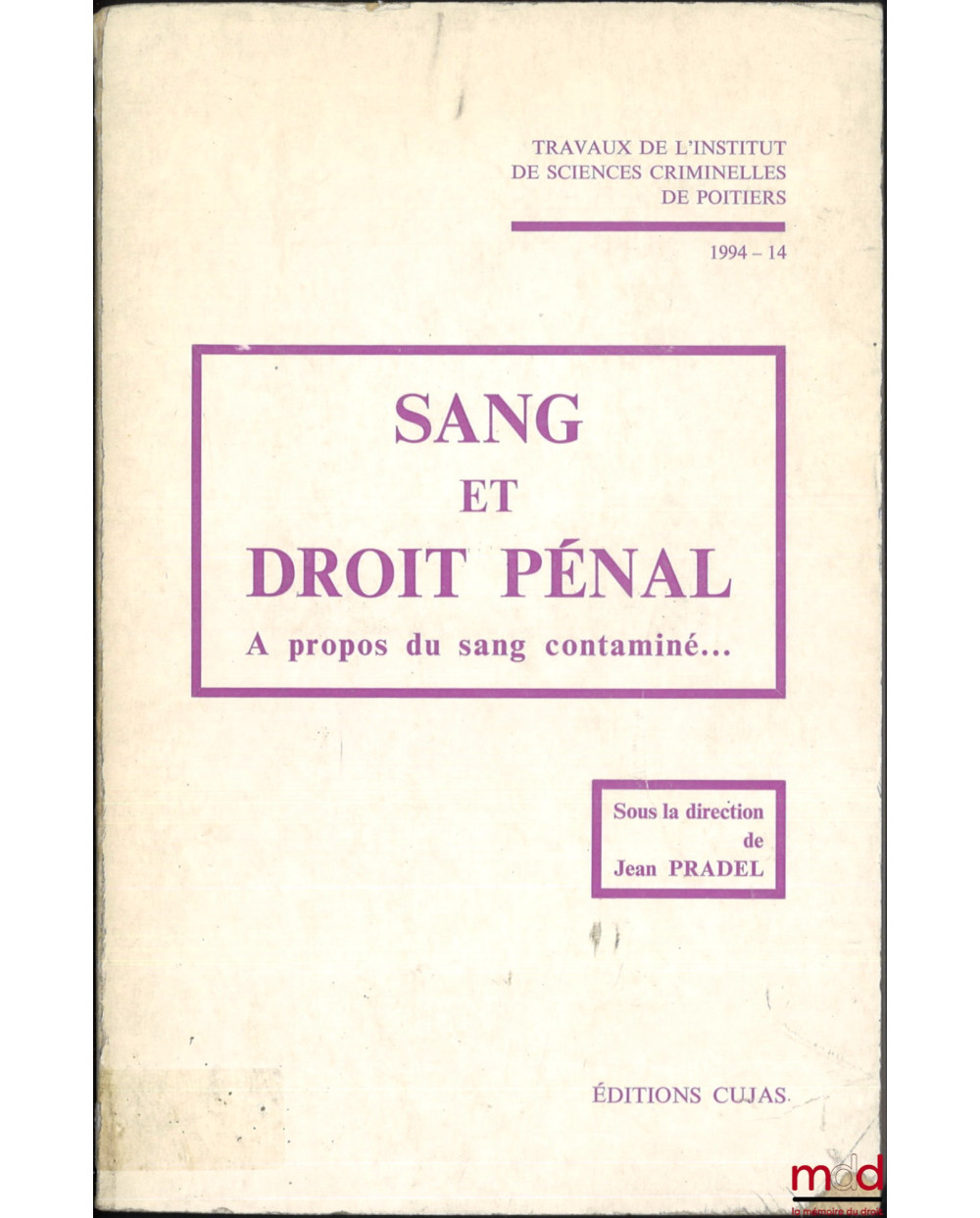 SANG ET DROIT PÉNAL, À propos du sang contaminé..., dir. Jean Pradel, Travaux de l’institut de sciences criminelles de Poitiers, vol. XIV