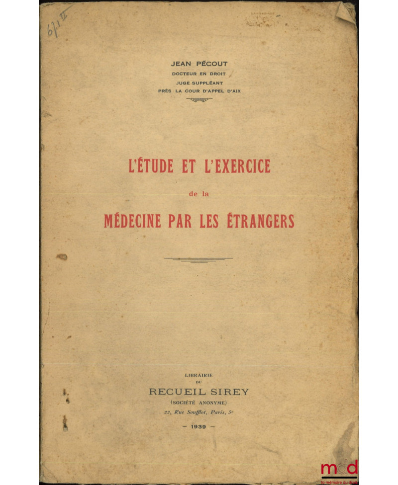 L’ÉTUDE ET L’EXERCICE DE LA MÉDECINE PAR LES ÉTRANGERS