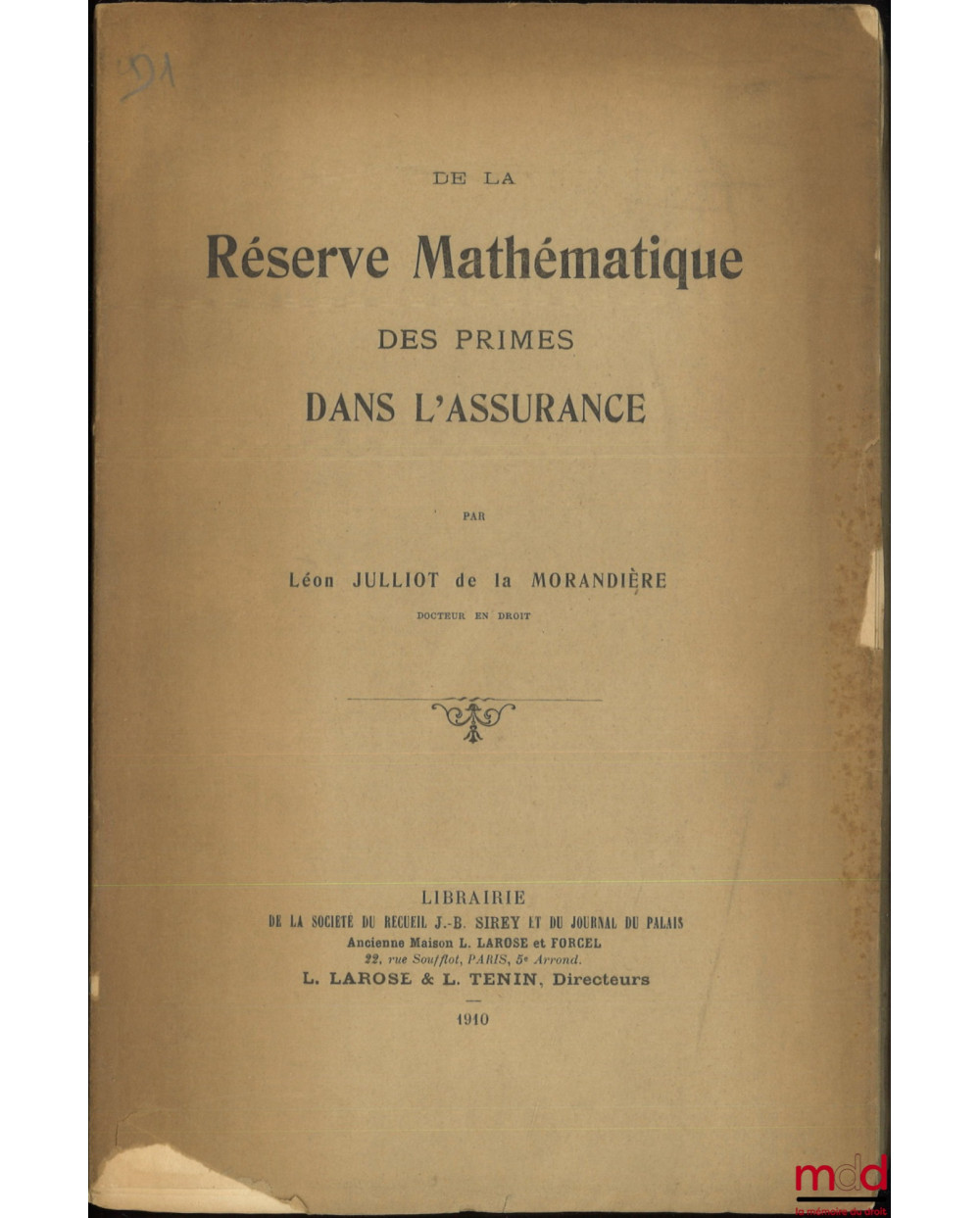 DE LA RÉSERVE MATHÉMATIQUE DES PRIMES DANS L’ASSURANCE