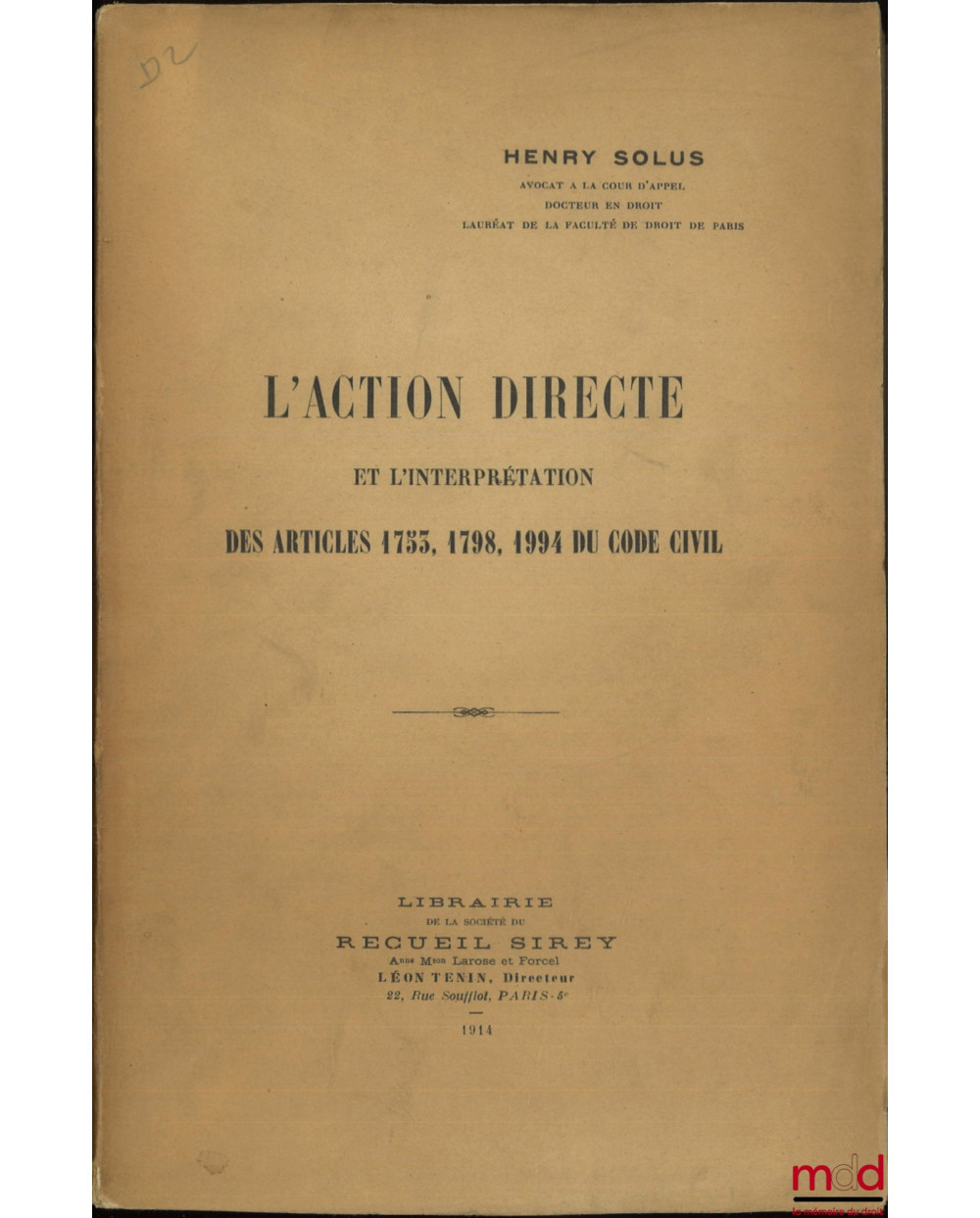 L’ACTION DIRECTE ET L’INTERPRÉTATION DES ARTICLES 1935, 1798, 1994 DU CODE CIVIL