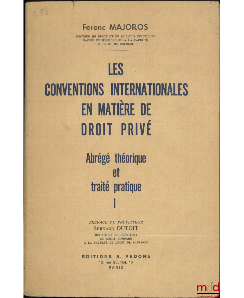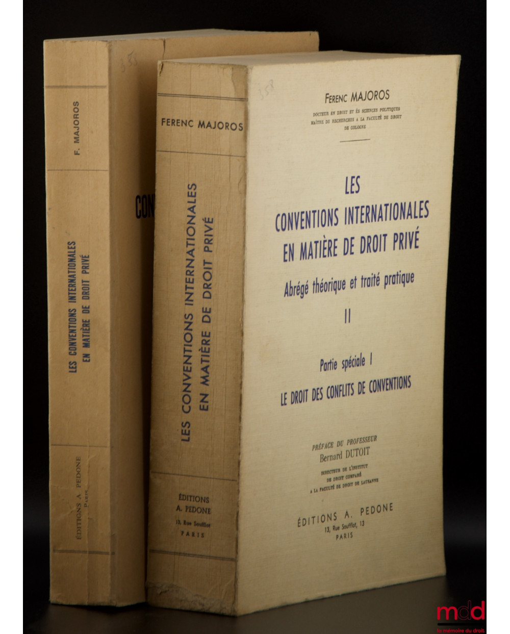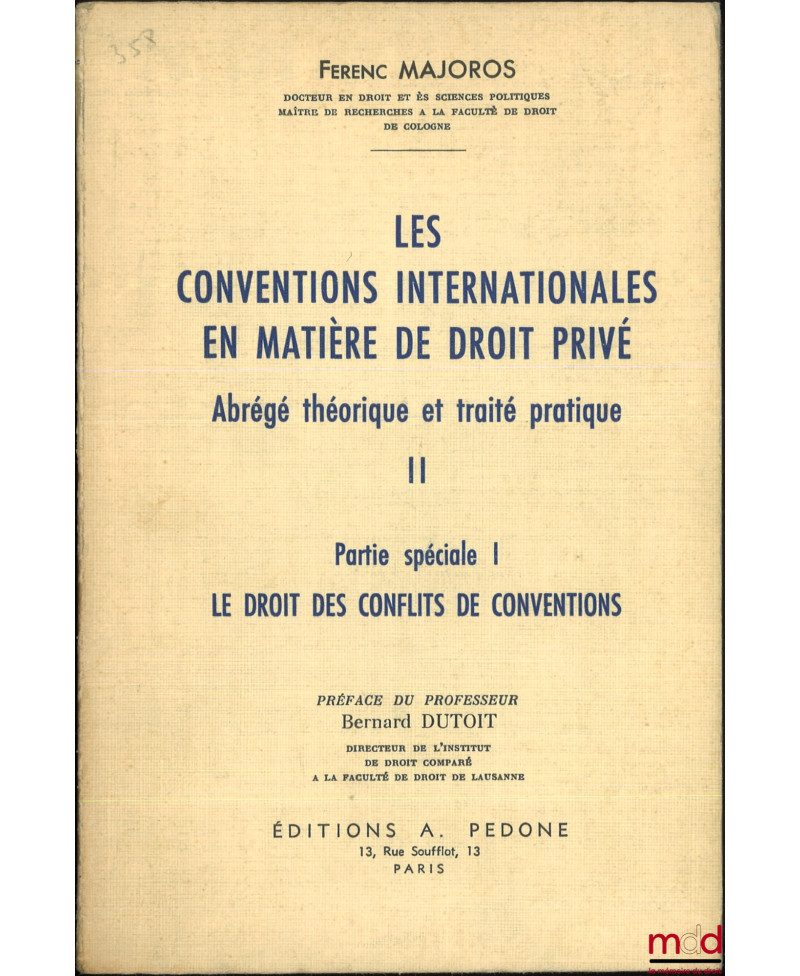 LES CONVENTIONS INTERNATIONALES EN MATIÈRE DE DROIT PRIVÉ, Abrégé théorique et pratique, t. I et t. II : Partie spéciale I Le droit des conflits de conventions, Préface du Pr. Bernard Dutoit