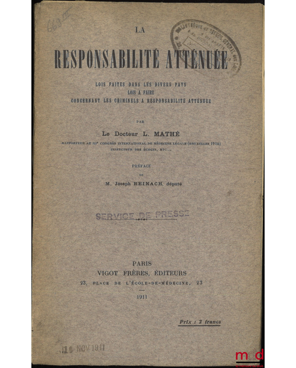 Bonne description de la perception de l’irresponsabilité en matière juridique et médicale à la date d’édition.