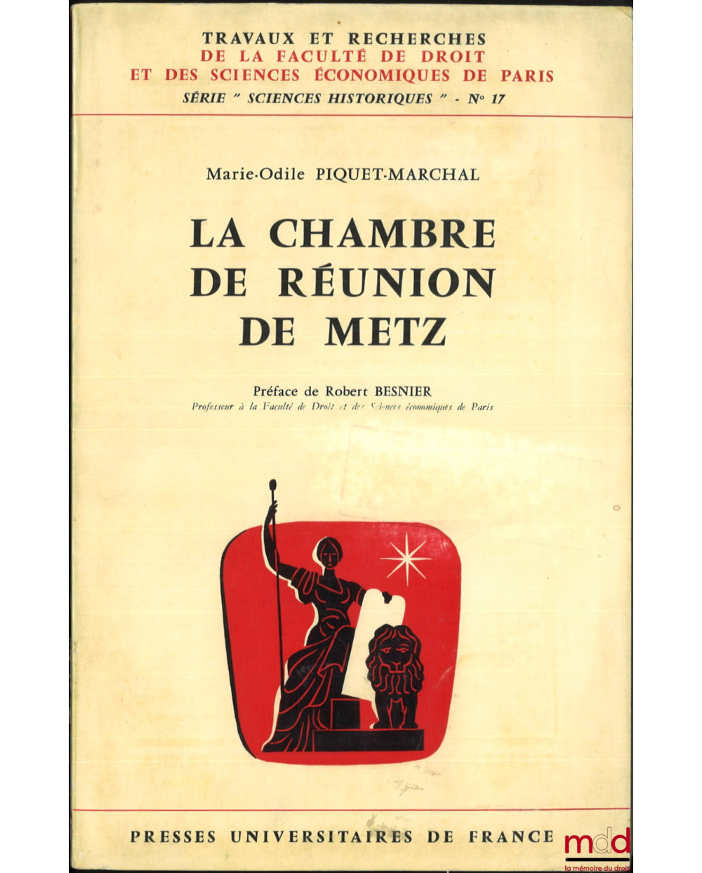LA CHAMBRE DE RÉUNION DE METZ, Préface Robert Besnier, Travaux et Recherches de la Faculté de Droit et des Sciences Économiques de Paris, série “Sciences Historiques”, n° 17
