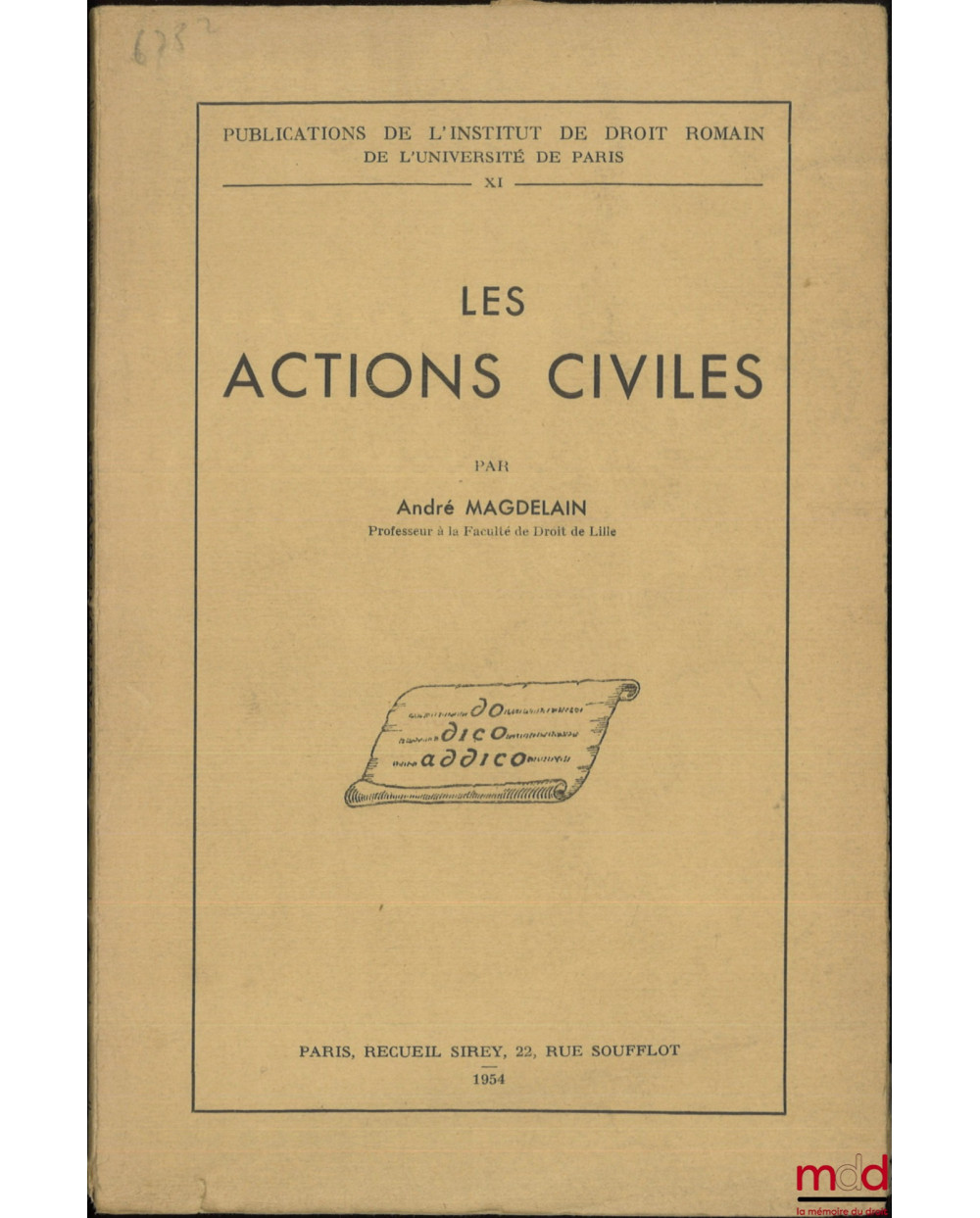 LES ACTIONS CIVILES, Publ. de l’Inst. de droit romain de l’Université de Paris, t. XI