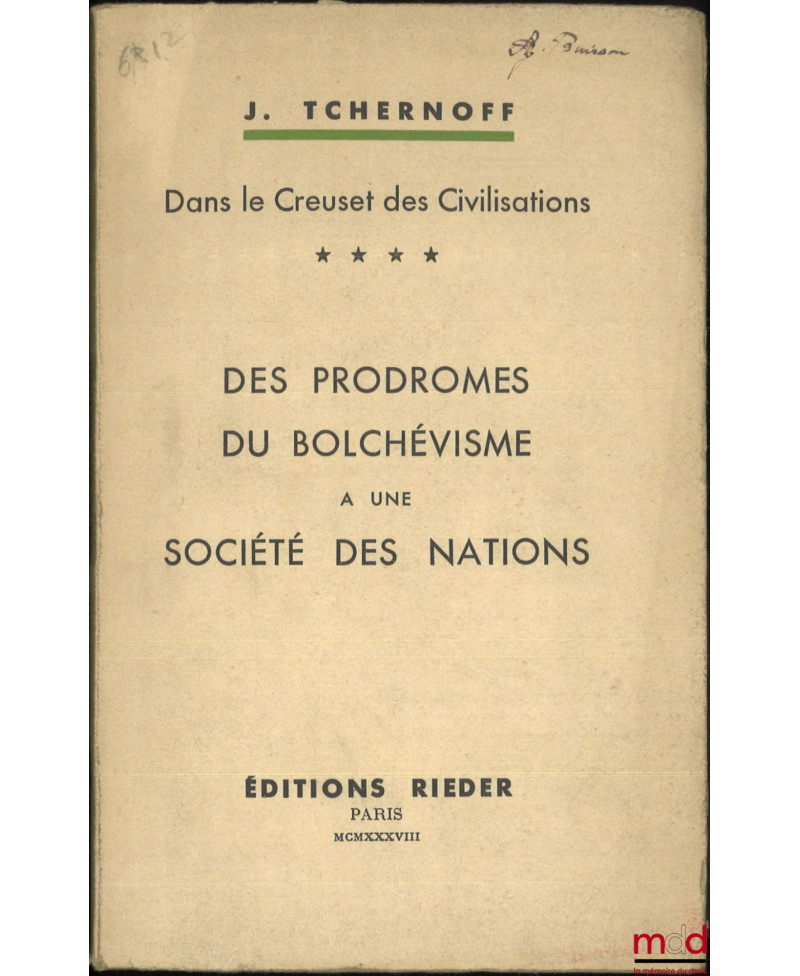 DANS LE CREUSET DES CIVILISATIONS :t. I : De Nijnii-Novgorod à Paris ;t. IV : Des prodromes du Bolchévisme à une société des Nations ; [mq. t. II et III]