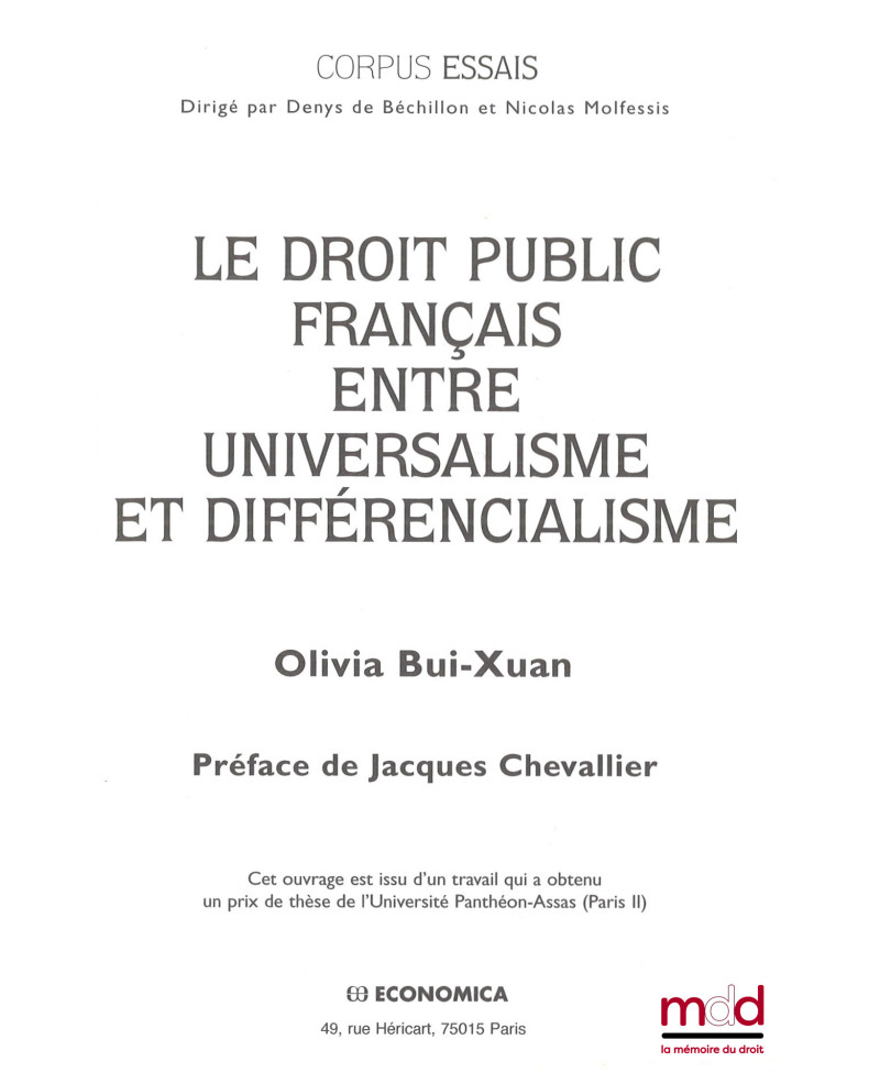 LE DROIT PUBLIC FRANÇAIS ENTRE UNIVERSALISME ET DIFFÉRENCIALISME, Préface de Jacques Chevallier