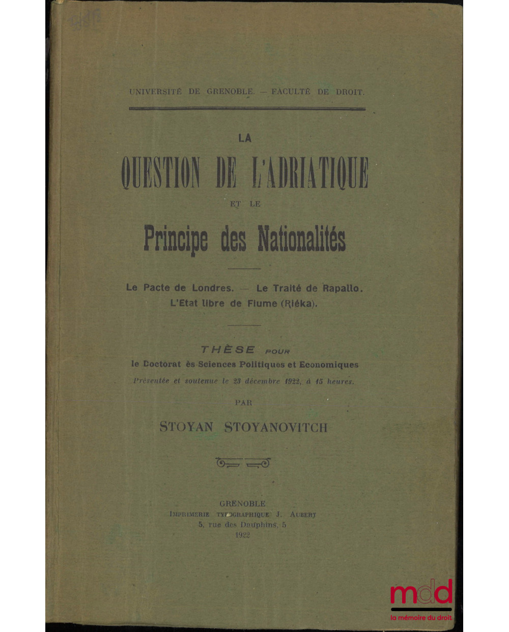LA QUESTION DE L’ADRIATIQUE ET LE PRINCIPE DES NATIONALITÉS, Le pacte de Londres. – Le traité de Rapallo. – L’État libre de Flume (Riéka)