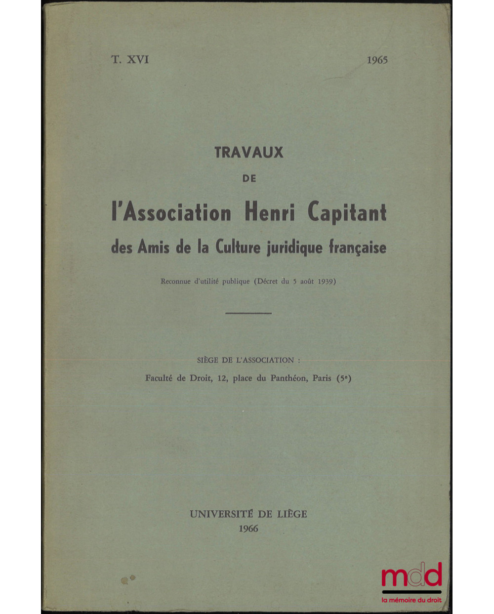 LA CROISSANCE DES VILLES ET SON INFLUENCE SUR LE RÉGIME JURIDIQUE DE LA PROPRIÉTÉ IMMOBILIÈRE, Journées de Liège 25-28 mai 1965, t. XVI
