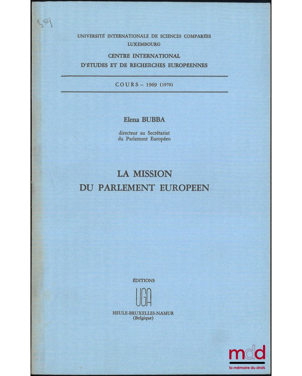 LA MISSION DU PARLEMENT EUROPÉEN, Cours - 1969 (1970), Centre international d’études et de recherches européennes, Université internationale de sciences comparées Luxembourg,