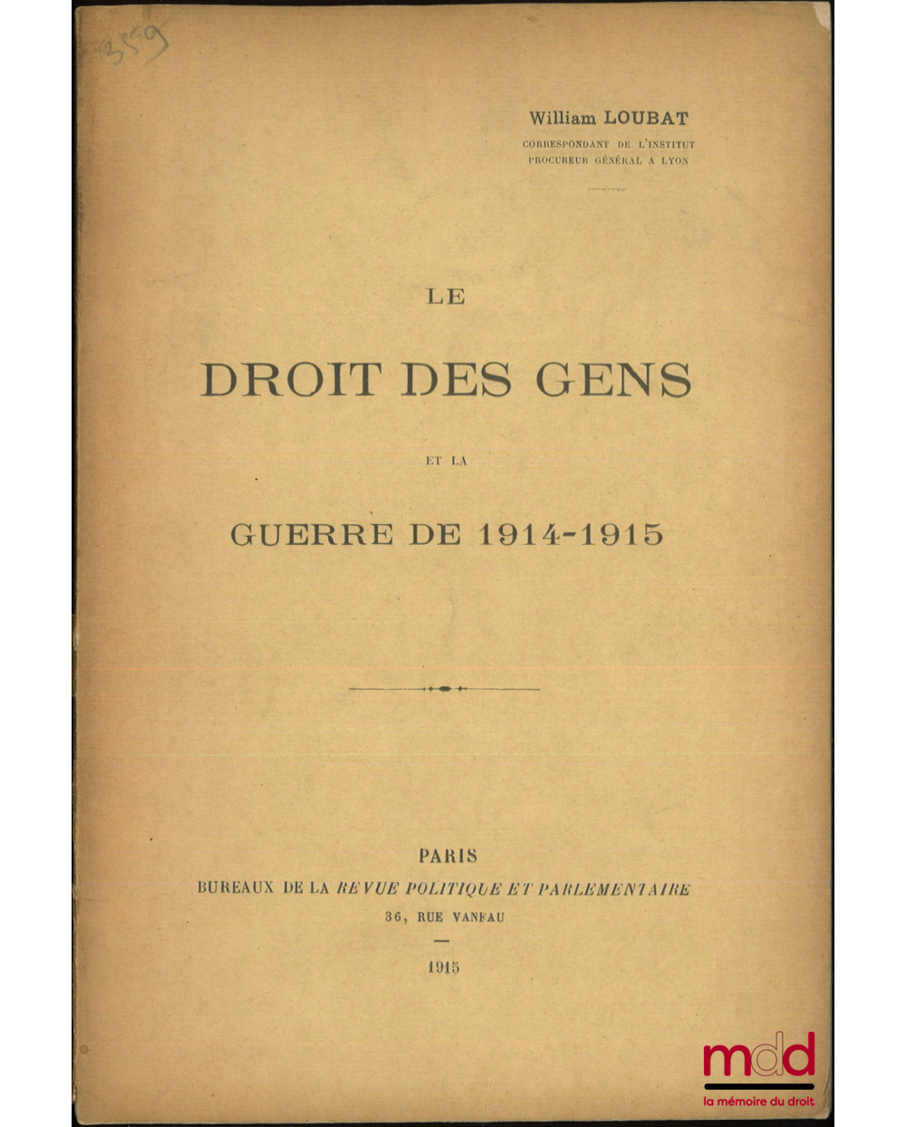 LE DROIT DES GENS ET LA GUERRE DE 1914-1915