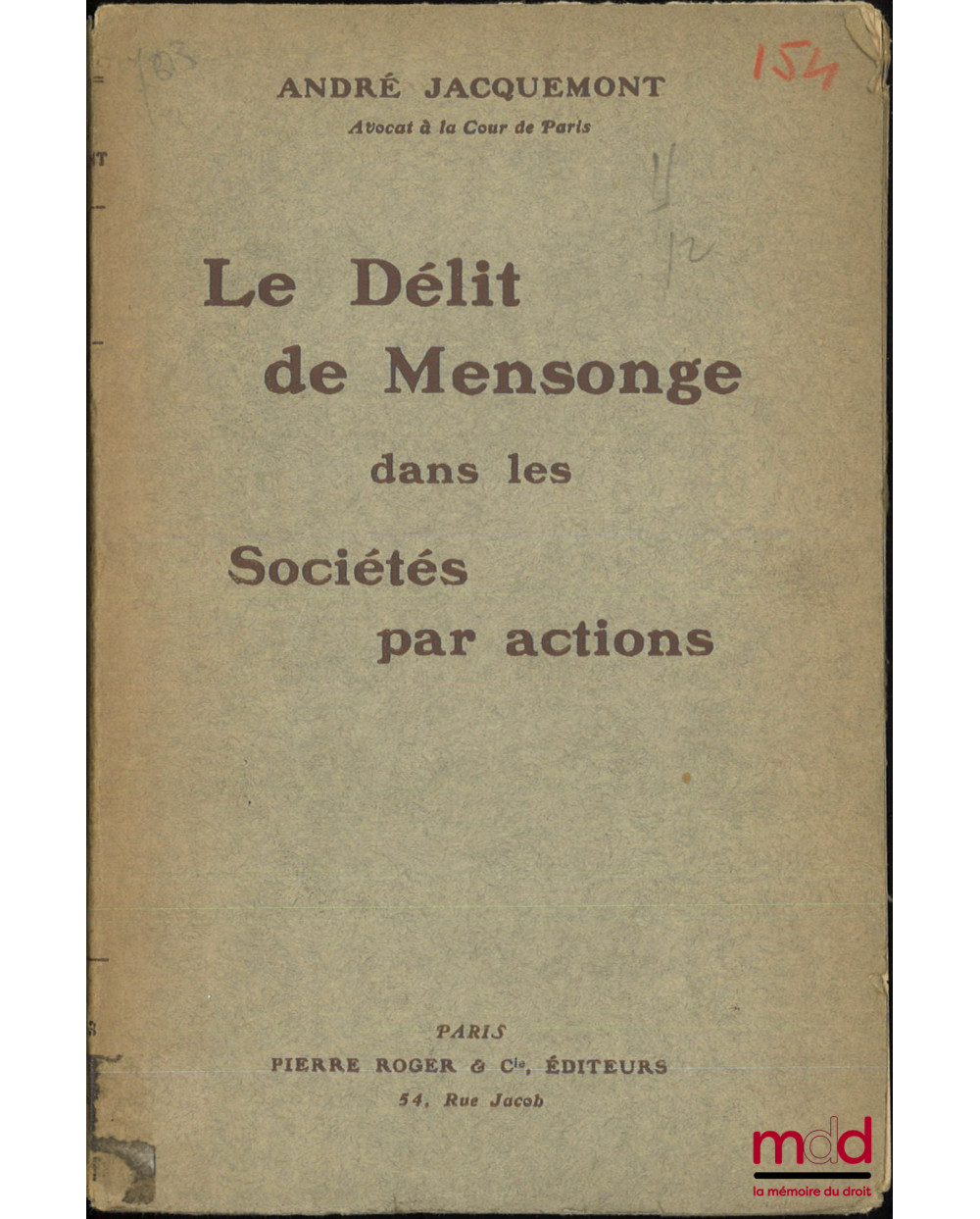 LE DÉLIT DE MENSONGE DANS LES SOCIÉTÉS PAR ACTION, Étude de l’article 15, §§ 1 et 2, de la loi du 24 juillet 1867