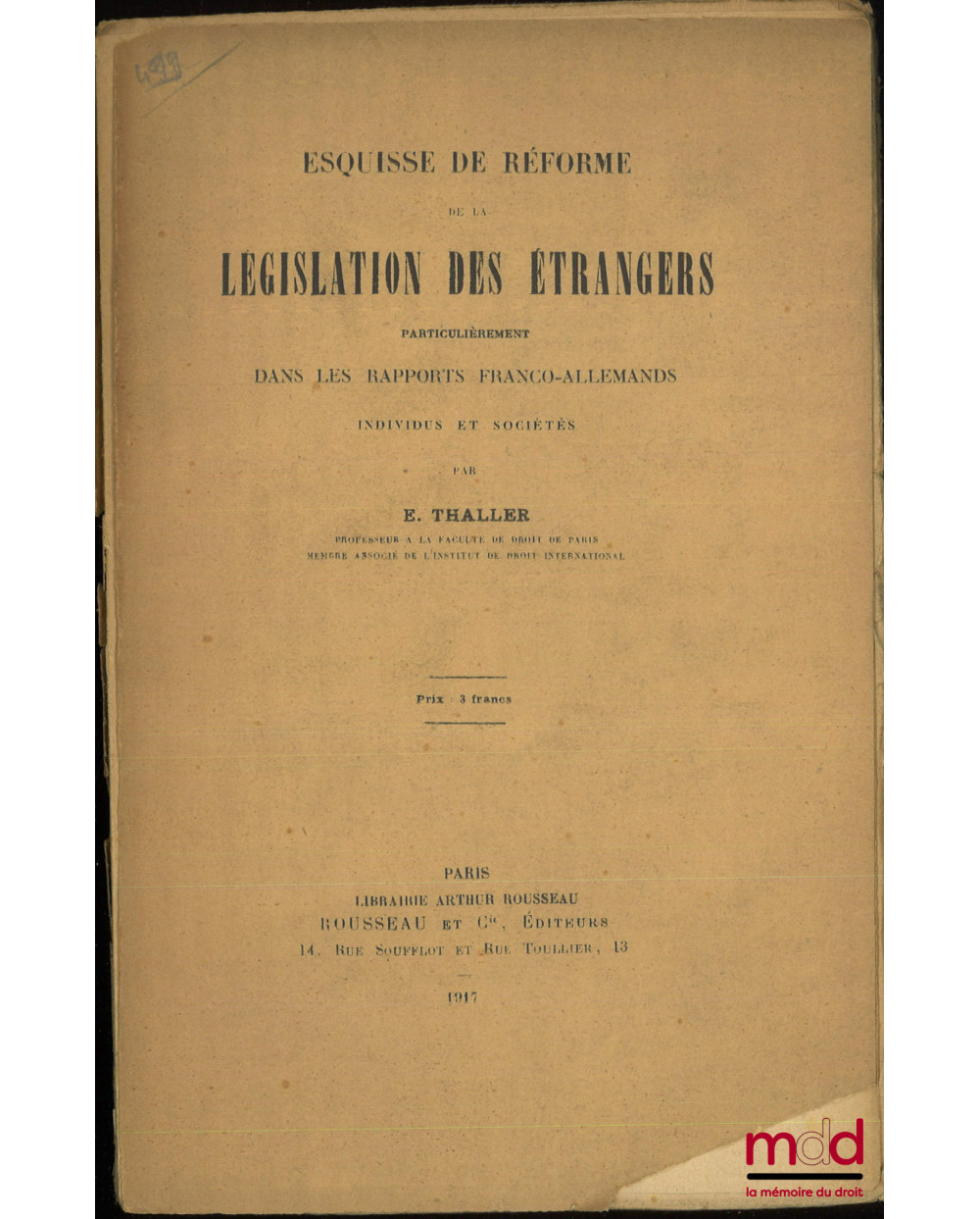ESQUISSE DE RÉFORME DE LA LÉGISLATION DES ÉTRANGERS particulièrement dans les rapports franco-allemands, Individus et sociétés