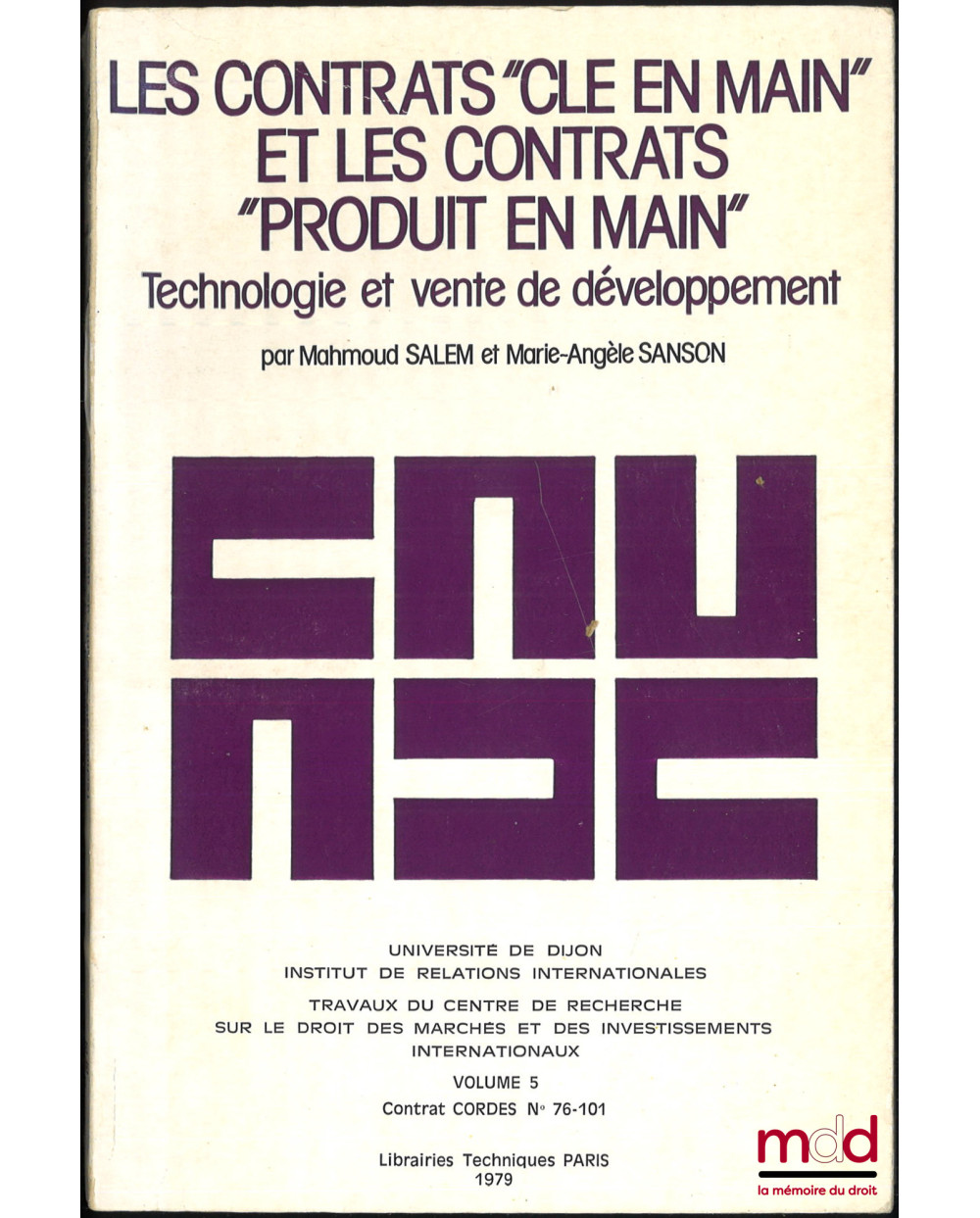 LES CONTRATS "CLÉ EN MAIN" ET LES CONTRATS "PRODUIT EN MAIN", TECHNOLOGIE ET VENTE DE DÉVELOPPEMENT, Université de Dijon, Institut de relations internationales, Travaux du Centre de rech. sur le droit des marchés et des investissements internationaux, vol. 5