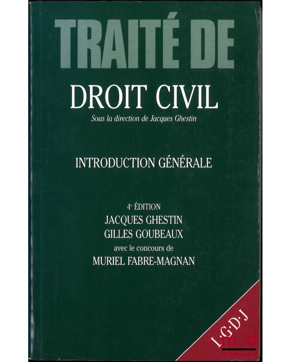 INTRODUCTION GÉNÉRALE, TRAITÉ DE DROIT CIVIL, sous la direction de Jacques Ghestin