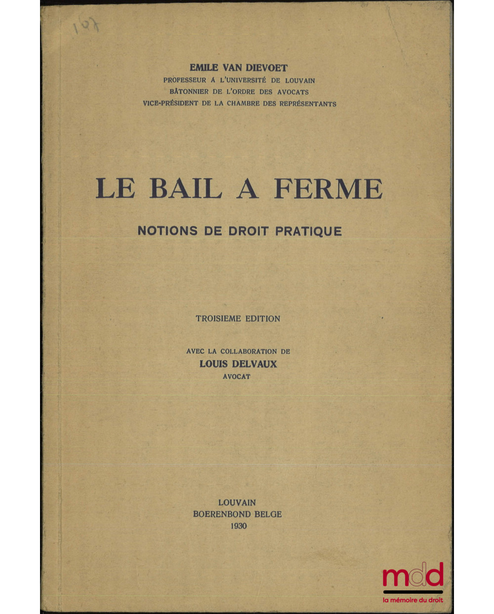 LE BAIL À FERME, Notions de droit pratique, 3e éd., Avec la collaboration de Louis Delvaux