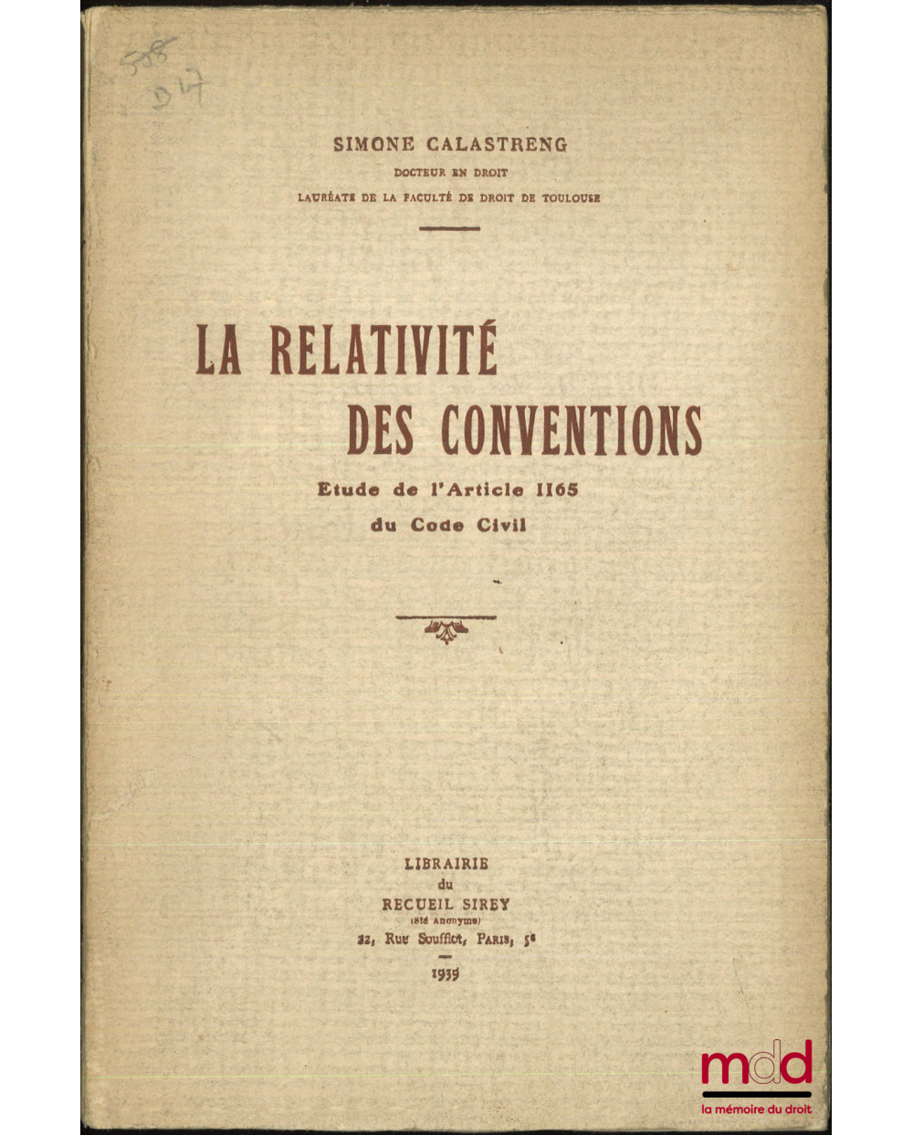 LA RELATIVITÉ DES CONVENTIONS, Étude de l’article 1165 du Code civil, Préface de Gabriel Marty