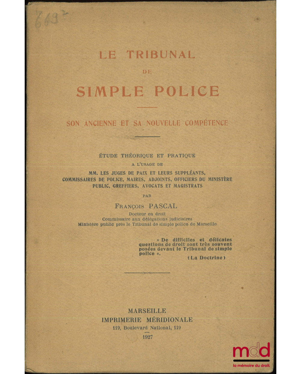 LE TRIBUNAL DE SIMPLE POLICE, Son ancienne et sa nouvelle compétence, Étude théorique et pratique