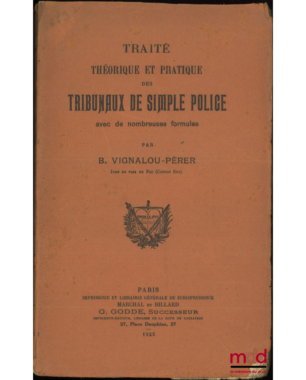 TRAITÉ THÉORIQUE ET PRATIQUE DES TRIBUNAUX DE SIMPLE POLICE avec de nombreuses formules