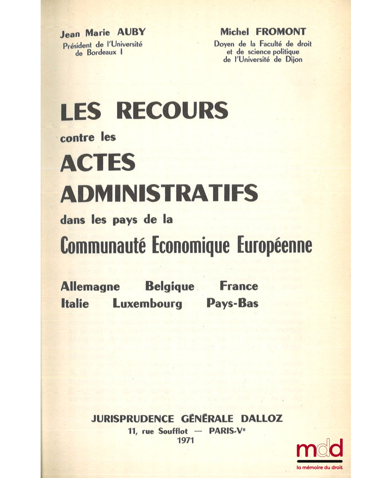 LES RECOURS CONTRE LES ACTES ADMINISTRATIFS DANS LES PAYS DE LA CEE (Allemagne, Belgique, France, Italie, Luxembourg, Pays-Bas)