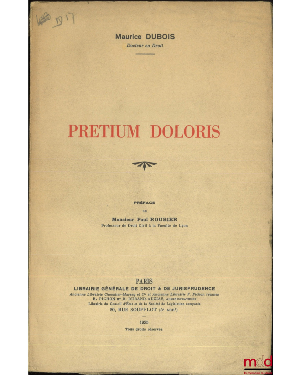 PRETIUM DOLORIS, Préface de Paul Roubier