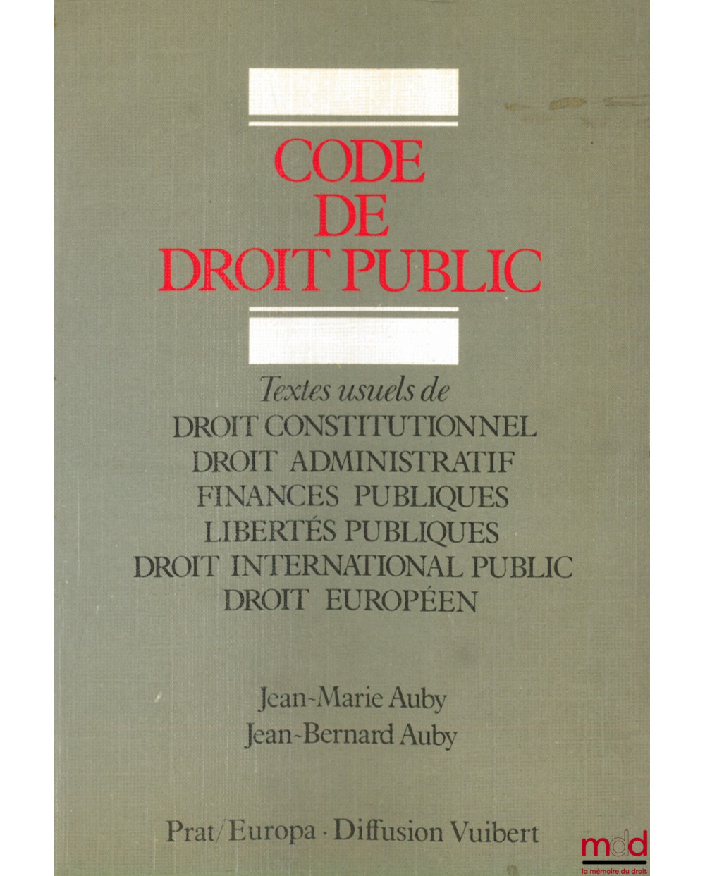 CODE DE DROIT PUBLIC, Textes usuels de Droit constitutionnel - Droit administratif - Finances publiques - Libertés publiques - Droit international public - Droit européen