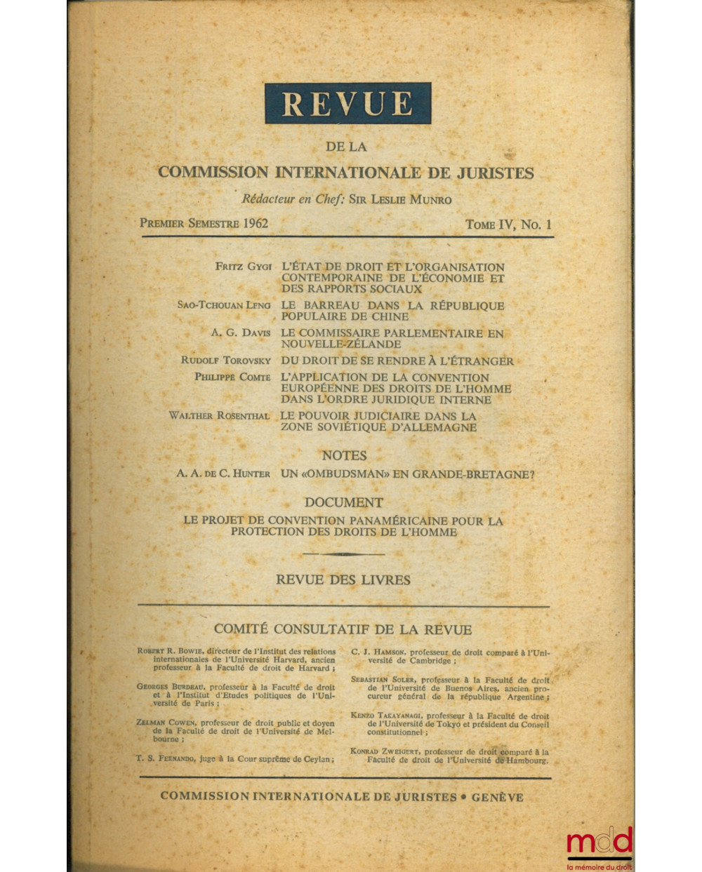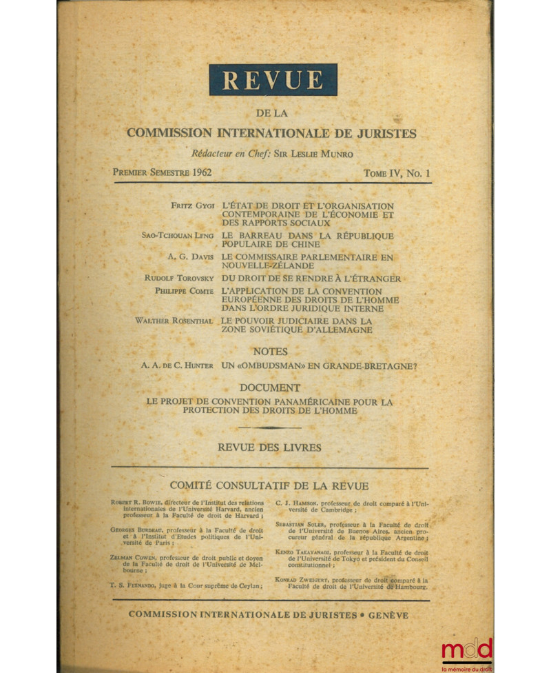 REVUE DE LA COMMISSION INTERNATIONALE DES JURISTES, 1er semestre 1962 t. IV, n° 1