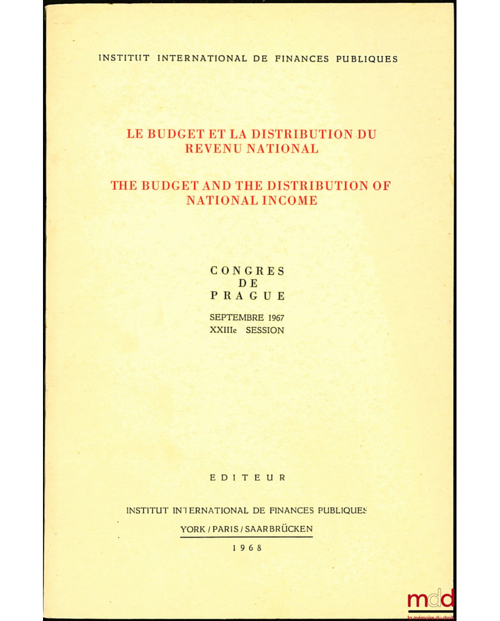 LE BUDGET ET LA DISTRIBUTION DU REVENU NATIONAL, Congrès de Prague de Septembre 1967, XXIIIème session, coll. Travaux de l’institut international de finances publiques York/Paris/Saarbrücken (textes en anglais, allemand et français selon l’intervenant)