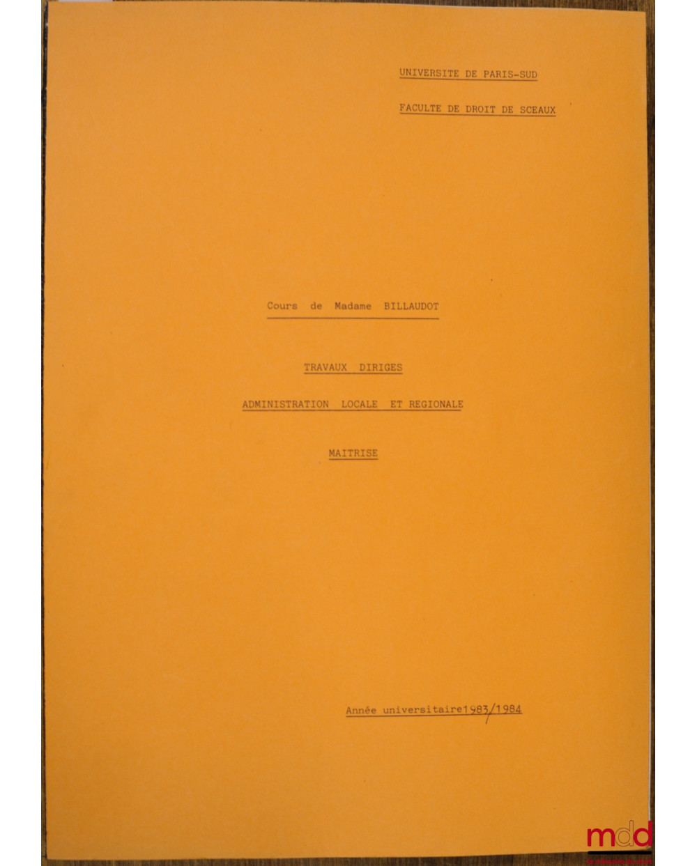 COURS D’ADMINISTRATION LOCALE ET RÉGIONALE, Travaux dirigés, maîtrise, année 1983-1984