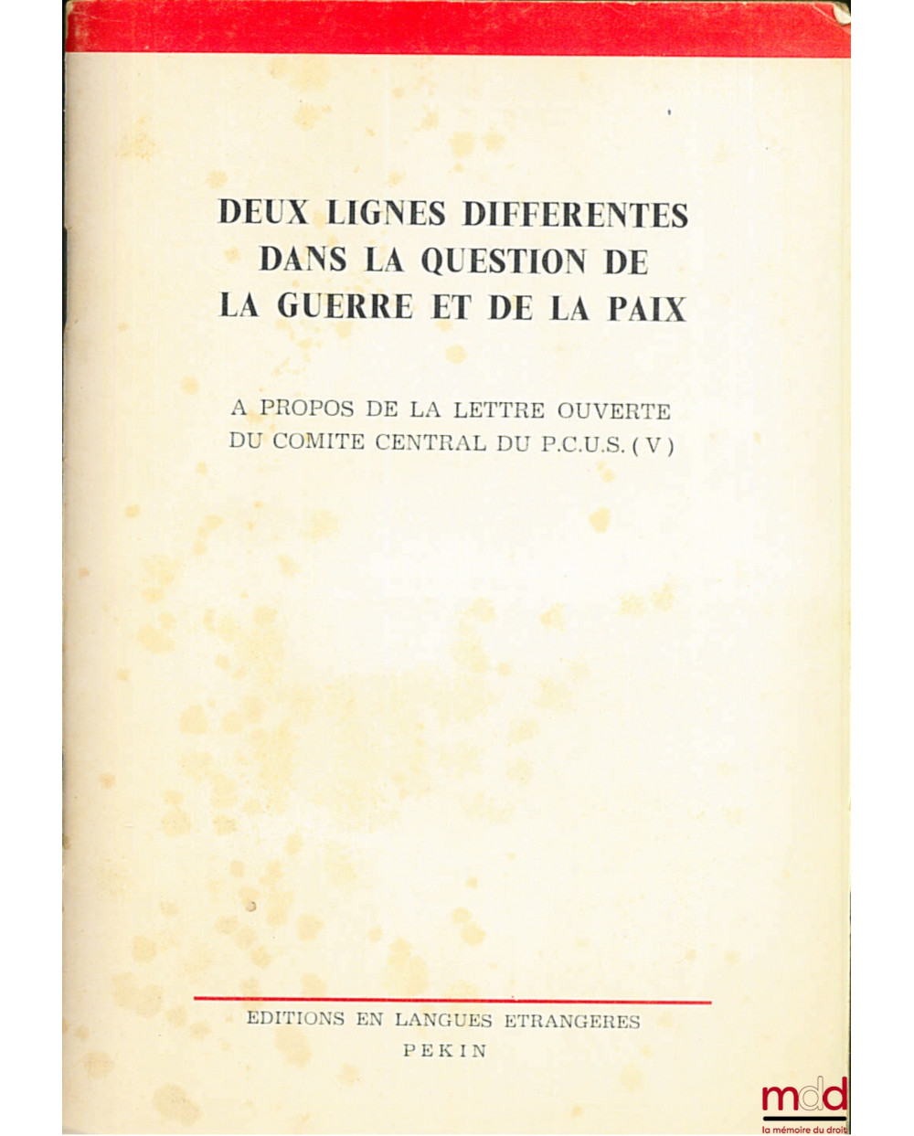 A PROPOS DE LA LETTRE OUVERTE DU COMITÉ CENTRAL DU P.C.U.S., Articles de la Rédaction du Renmin Ribao et de la Rédaction du Hongqi