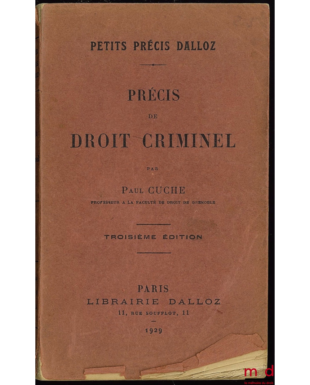 PRÉCIS DE DROIT CRIMINEL, 3e éd., coll. Petits précis Dalloz
