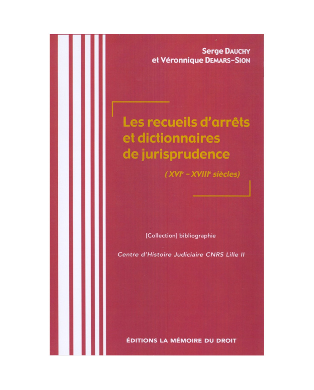 LES RECUEILS D’ARRÊTS ET DICTIONNAIRES DE JURISPRUDENCE (XVIe-XVIIIe SIÈCLES) Sous la direction de Serge DAUCHY & Véronique DEMARS-SION