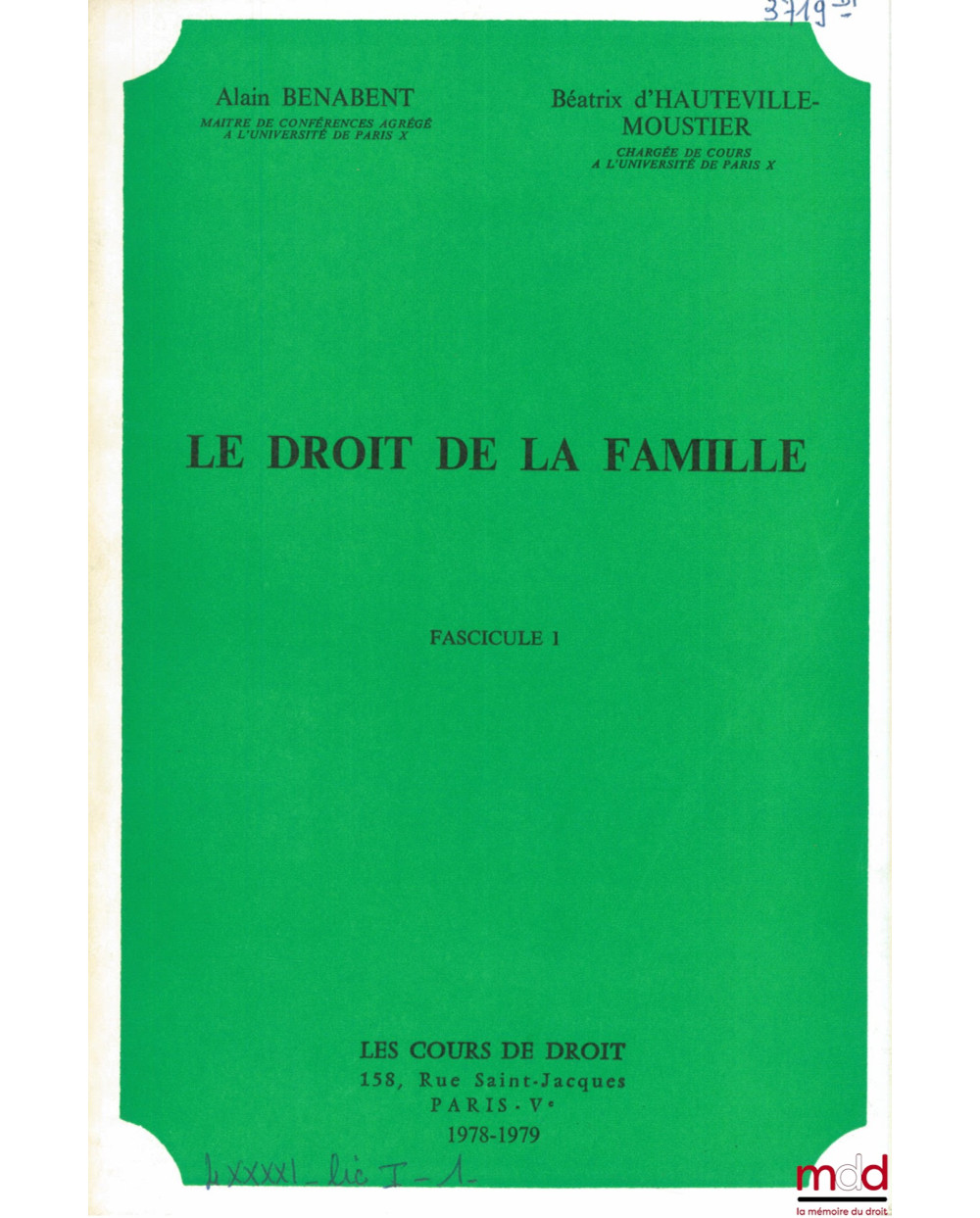LE DROIT DE LA FAMILLE, année 1978-1979