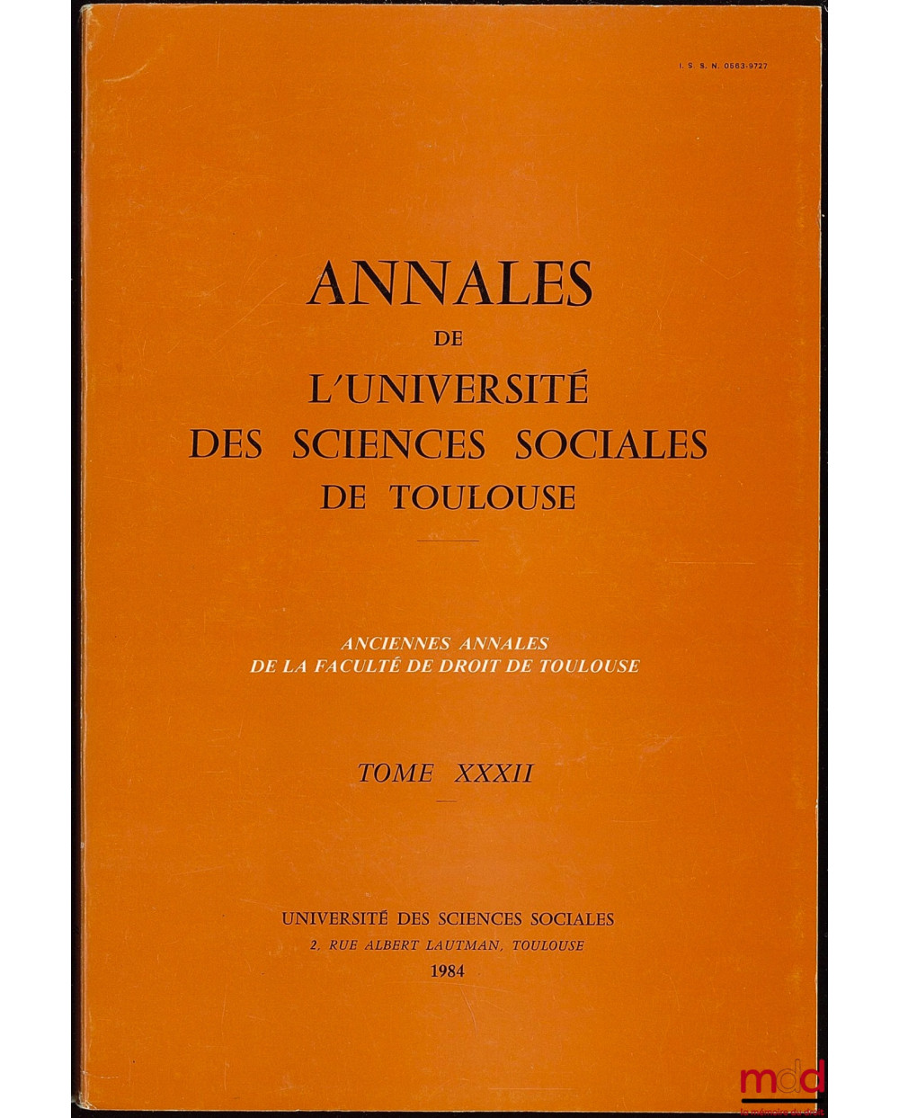 ANNALES DE L’UNIVERSITÉ DES SCIENCES SOCIALES DE TOULOUSE, t. XXXII, 1984