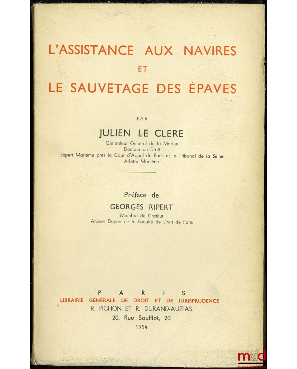 L’ASSISTANT AUX NAVIRES ET LE SAUVETAGE DES ÉPAVES, Préface de Georges Ripert