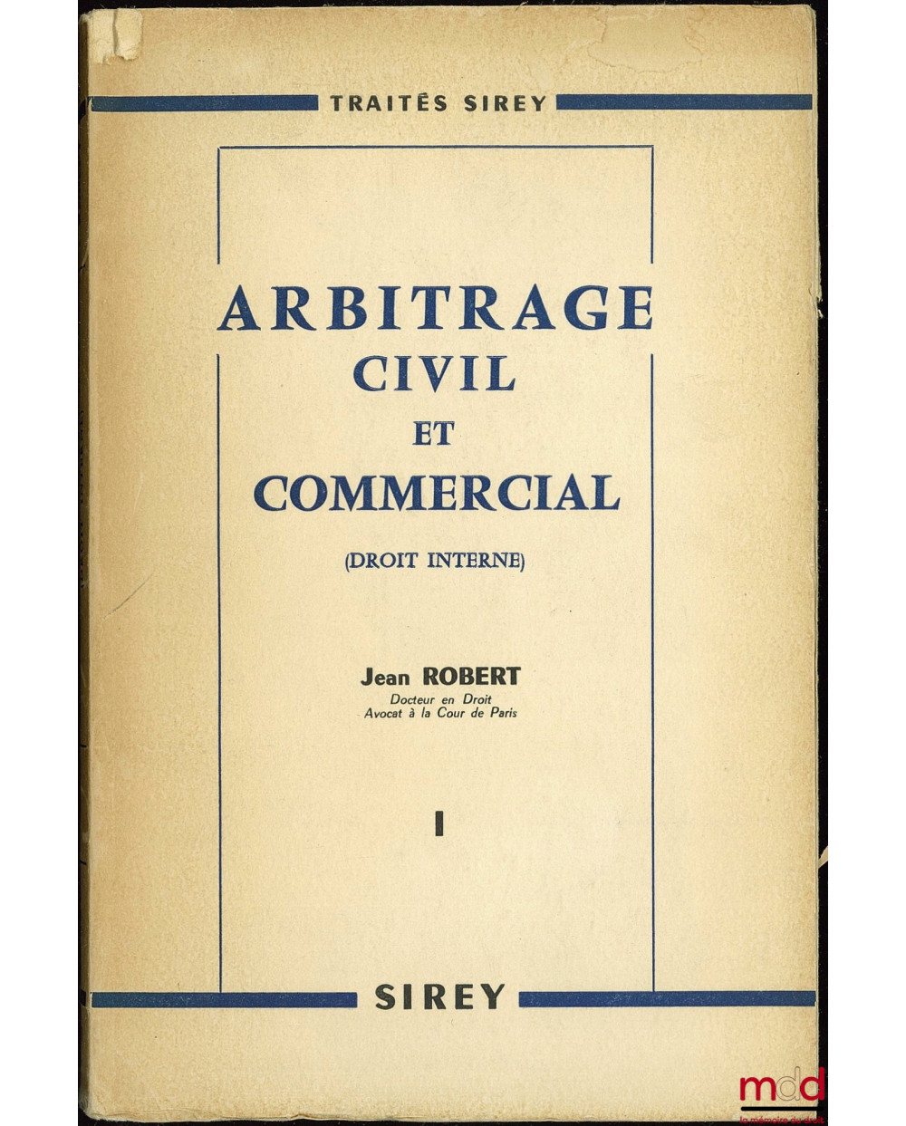 ARBITRAGE CIVIL ET COMMERCIAL EN DROIT INTERNE, t. I [seul] suivi de formules pratiques, 3e éd.