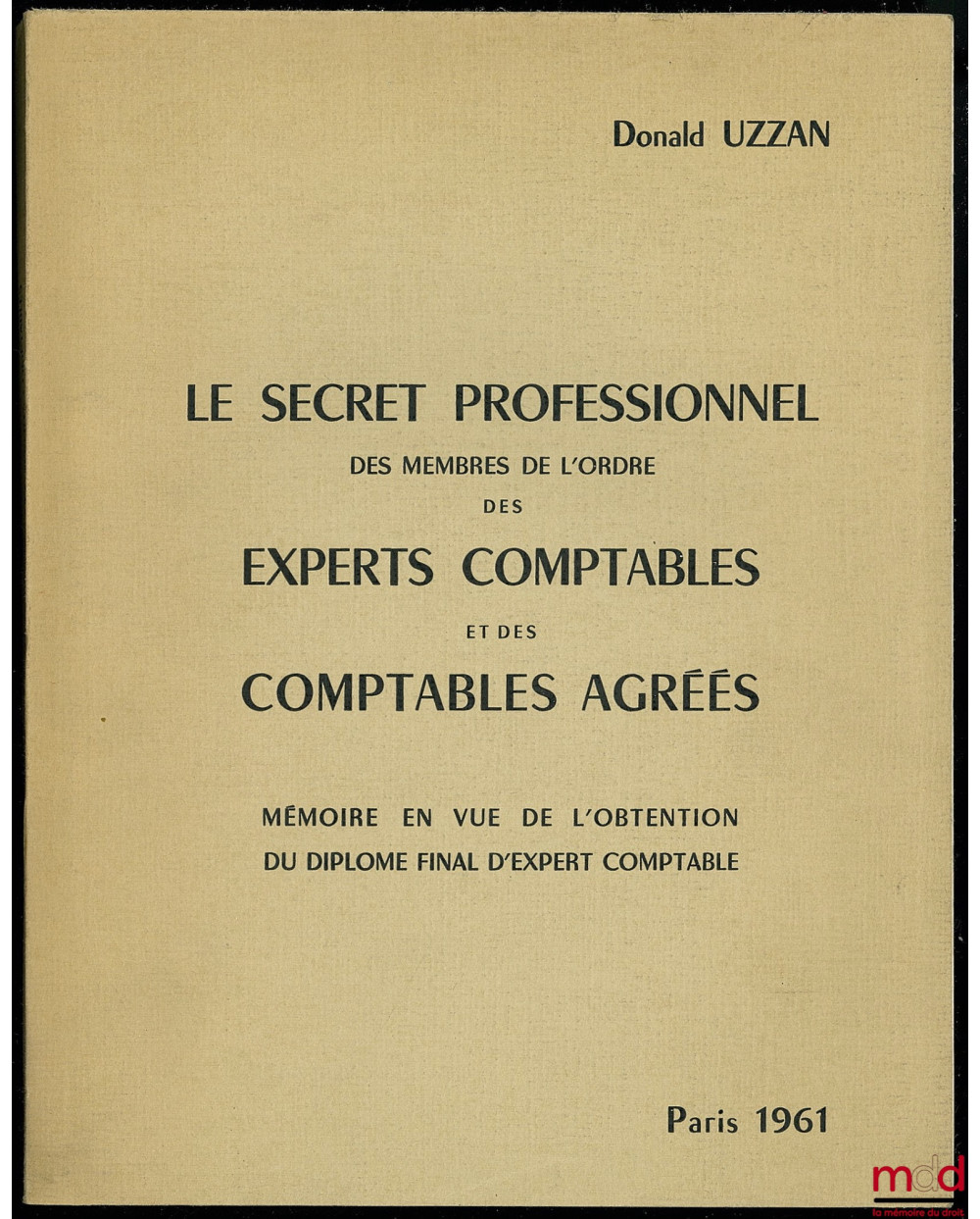 LE SECRET PROFESSIONNEL DES MEMBRES DE L’ORDRE DES EXPERTS-COMPTABLES ET DES COMPTABLES AGRÉÉS, Mémoire en vue de l’obtention du diplôme final d’expert-comptable, Paris 1961