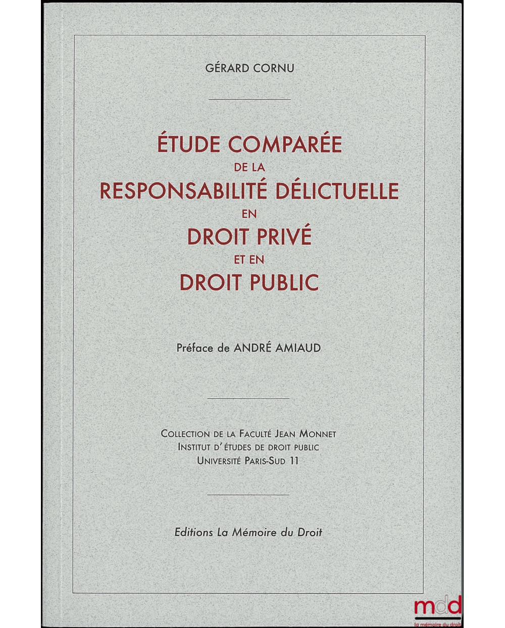 ÉTUDE COMPARÉE DE LA RESPONSABILITÉ DÉLICTUELLE EN DROIT PRIVÉ ET EN DROIT PUBLIC Préface de André AMIAUD Réimpression de l’éd. de 1951 chez Matot-Braine [thèse], Coll. de la Faculté Jean Monnet