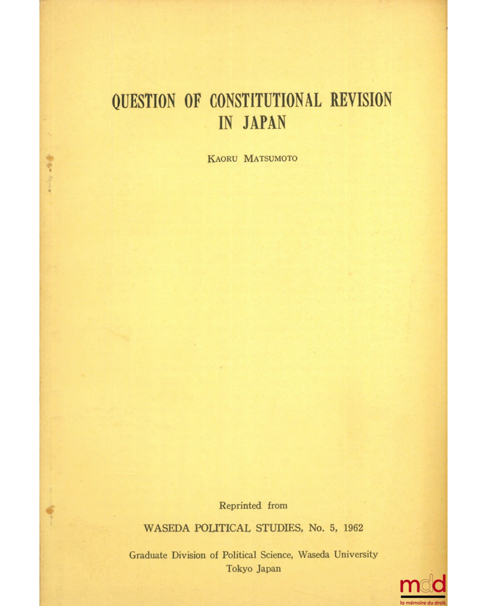 QUESTION OF CONSTITUTIONAL REVISION IN JAPAN, extrait de Waseda Political Studies n° 5, 1962