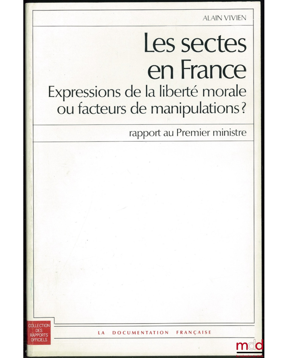 LES SECTES EN FRANCE Expressions de la liberté morale ou facteurs de manipulations ? Rapport au Premier ministre, Coll. des rapports officiels