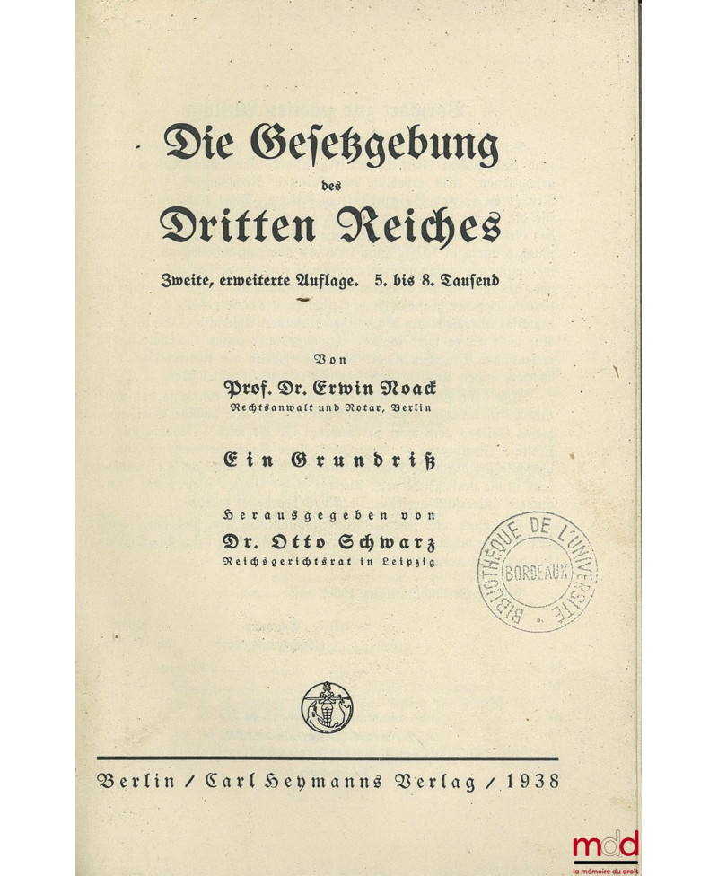 DIE GESETZGEBUNG DES DRITTEN REICHES, zweite, erweiterte Auflage. 5. bis 8. Tausend, mit Dr. Otto Schwarz