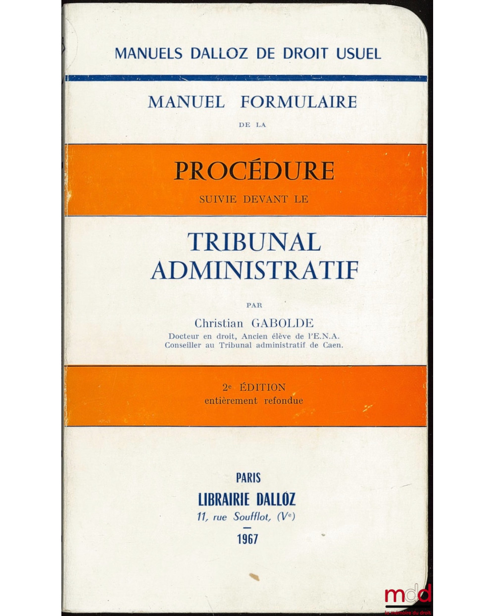 MANUEL FORMULAIRE DE LA PROCÉDURE SUIVIE DEVANT LE TRIBUNAL ADMINISTRATIF, 2e éd. entièrement refondue, Coll. Manuels Dalloz de droit usuel