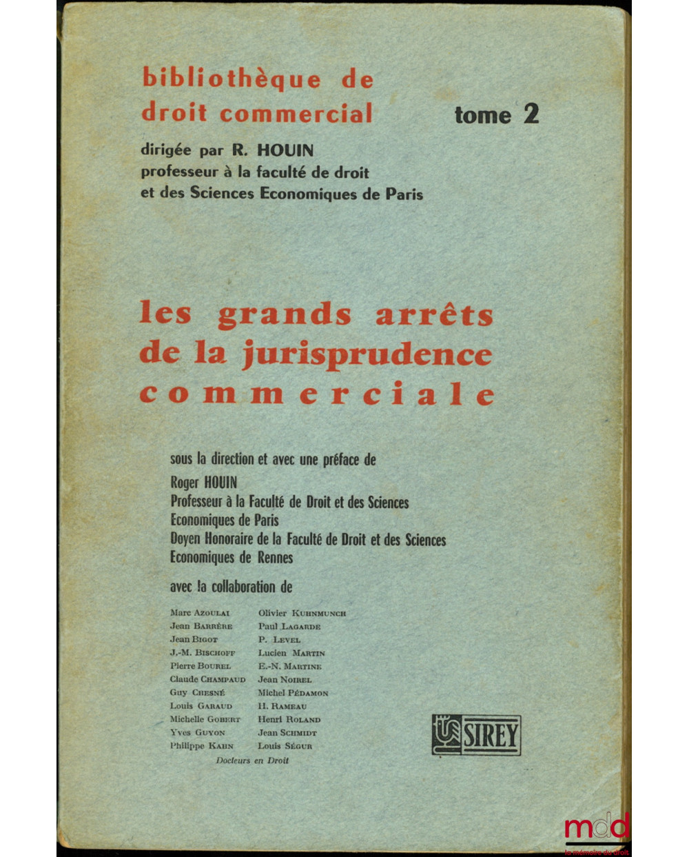 LES GRANDS ARRÊTS DE LA JURISPRUDENCE COMMERCIALE, sous la direction et avec une Préface de Roger Houin, Bibl. de droit commercial, t. 2