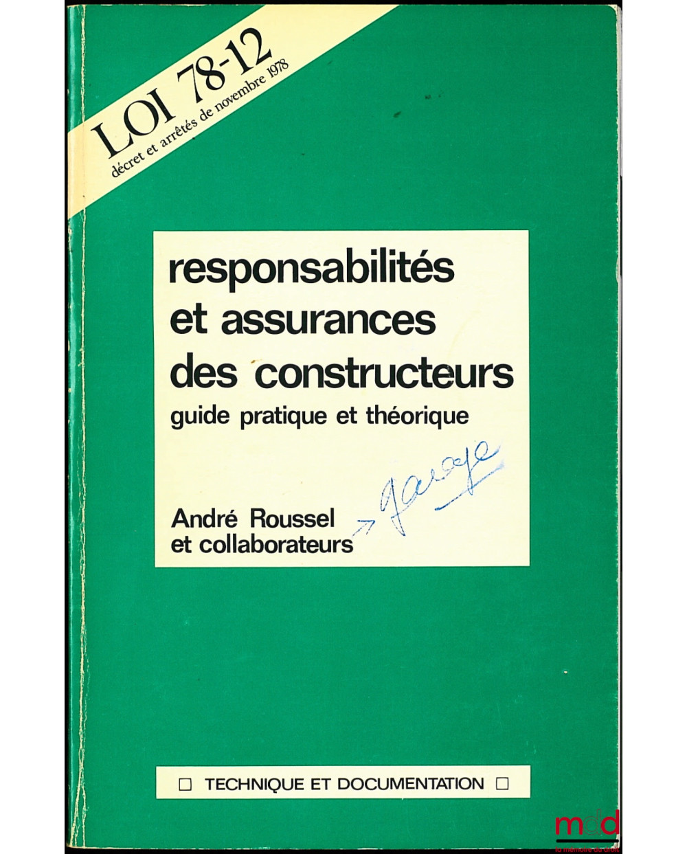 LOI 78-12, DÉCRET ET ARRÊTÉS DE NOVEMBRE 1978, RESPONSABILITÉS ET ASSURANCES DES CONSTRUCTEURS, guide pratique et théorique