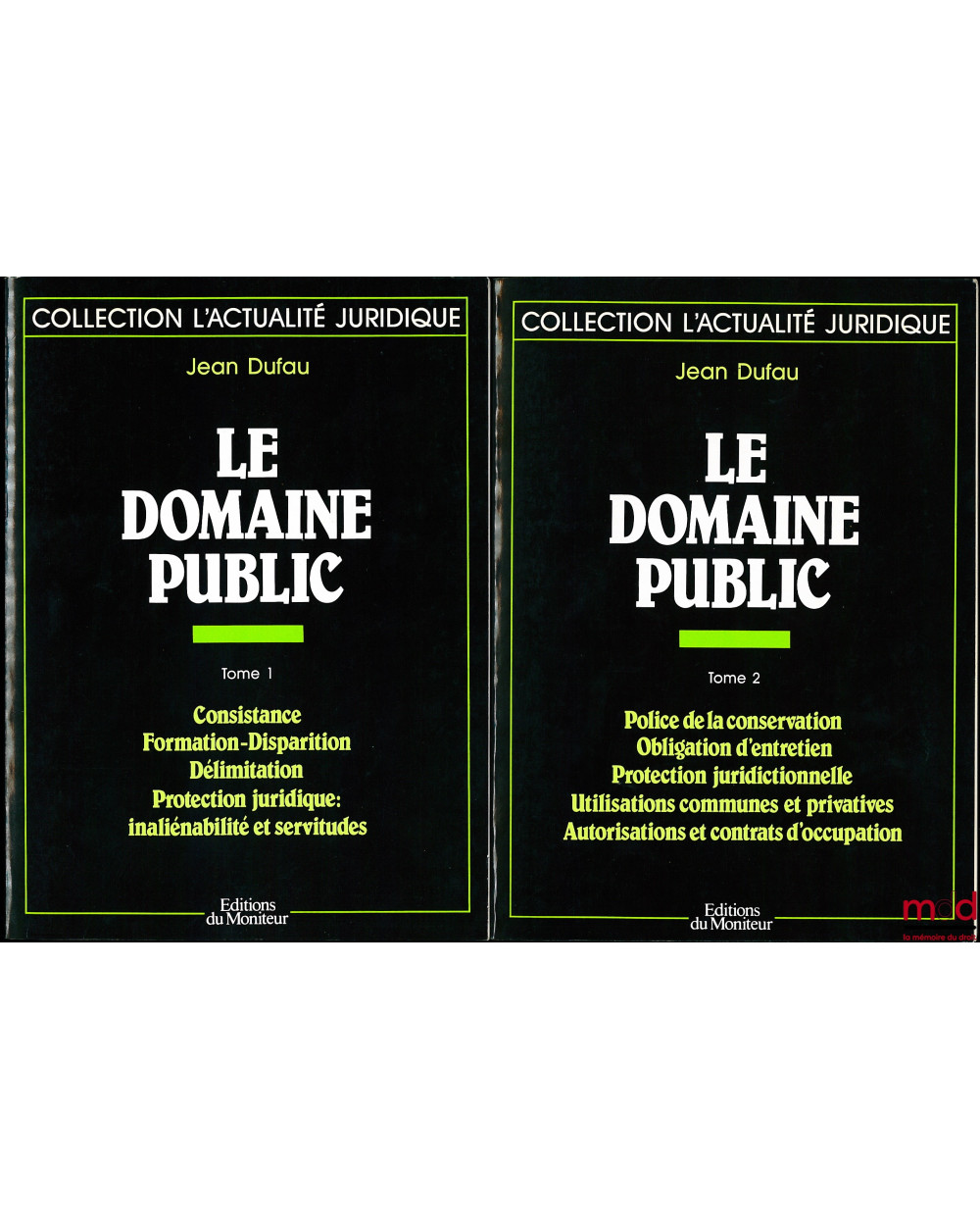 LE DOMAINE PUBLIC, t. I : Consistance - Formation-Disparition - Délimitation - Protection juridique : inaliénabilité et servitudes, t. II : Police de la conservation - Obligation d’entretien - Protection juridictionnelle - Utilisations communes et privatives ; Autorisations et contrats d’occupation, 3e éd. mise à jour et augmentée, coll. Actualité juridique
