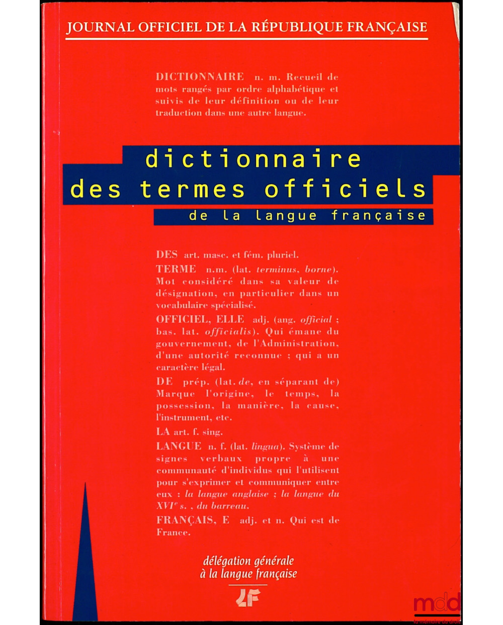 DICTIONNAIRE DES TERMES OFFICIELS DE LA LANGUE FRANÇAISE, Journal Officiel de la République française