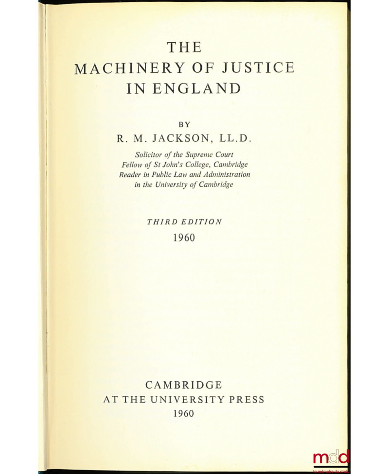 THE MACHINERY OF JUSTICE IN ENGLAND, 3rd éd.